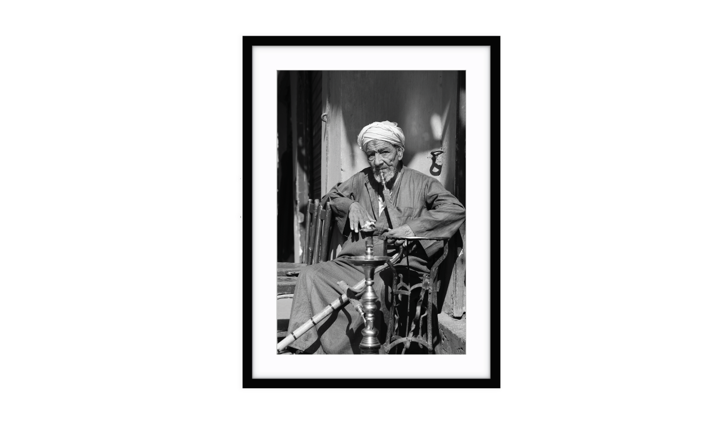 In the Islamic district of Old Cairo, a man enjoys a shisha pipe as he watches the world pass by.